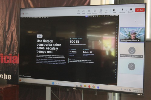 De manera virtual, el Ing. Santiago Respane Bustamante, impartió la conferencia centrada en el modelo de albo, como propuesta de integración entre Inteligencia Artificial, ciberseguridad, y desarrollo de talento; destacando la importancia de la colaboración interdisciplinaria, para impulsar ecosistemas tecnológicos innovadores.